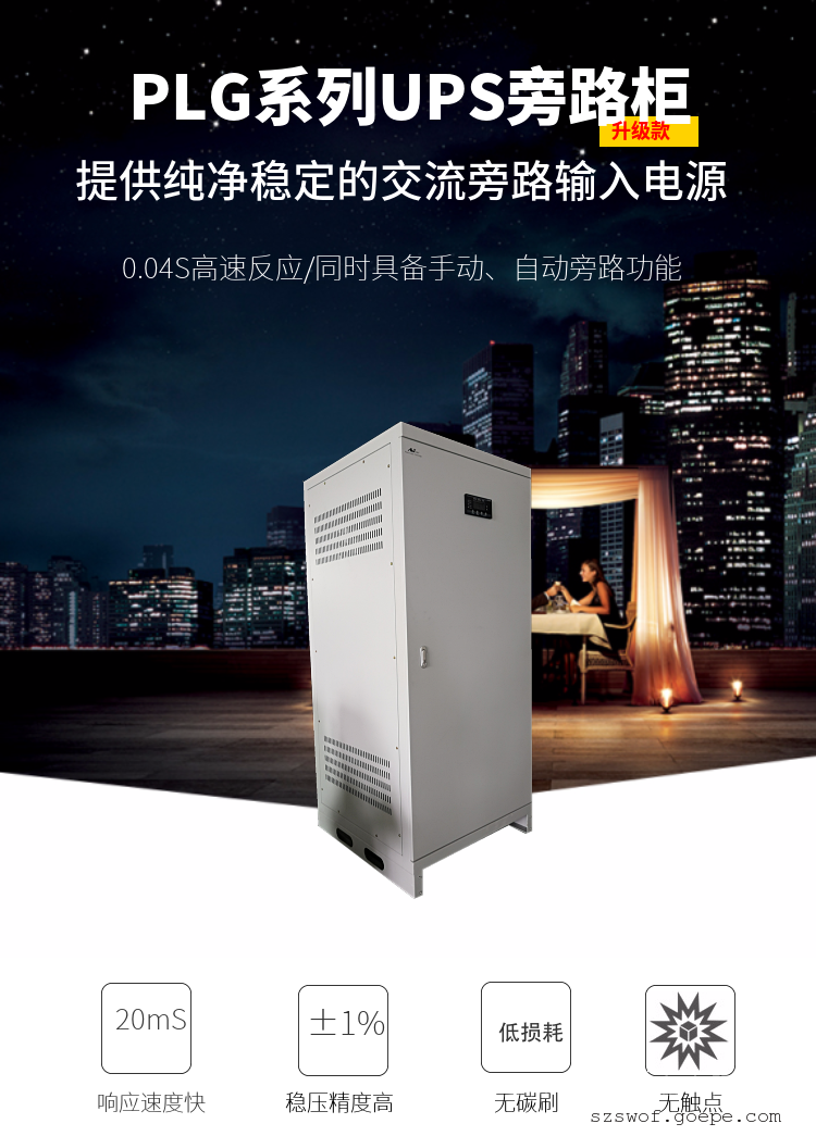 3、具有特别强的过载能力,当负载短路具有自动保护特性,输出电压自动降至零伏。当输入过电压时,也不会出现过压输出,从而确保用户设备安全运行。